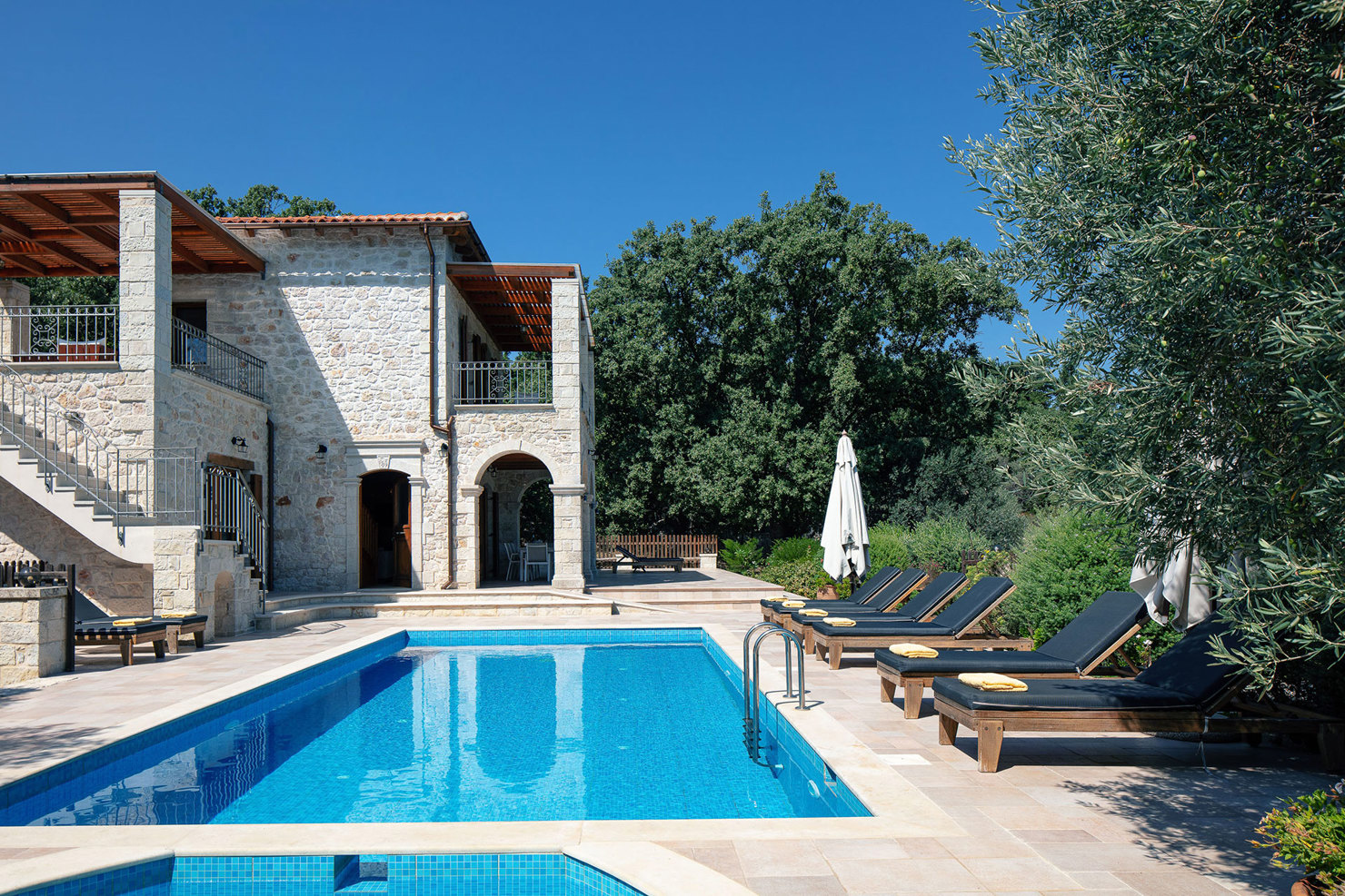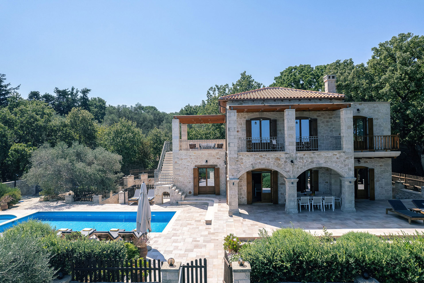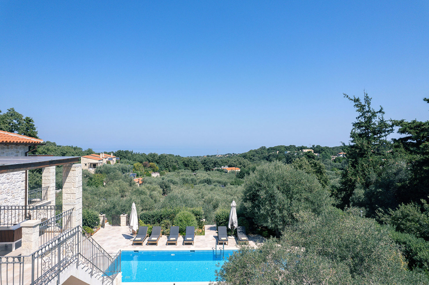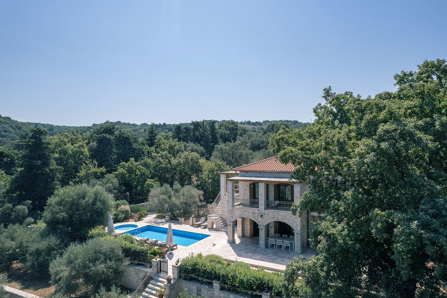 Perched in a serene forest with breathtaking views of the Mediterranean sea and olive groves, the property delivers an unforgettable blend of luxury and relaxation. The interior boasts five ensuite bedrooms with jacuzzis, a gourmet kitchen, a home cinema, and spaces for fitness and meditation. Outside, the private pool and beautifully maintained garden invite guests to unwind and savour the surroundings. A perfect escape for those seeking comfort and elegance in a stunning natural setting.